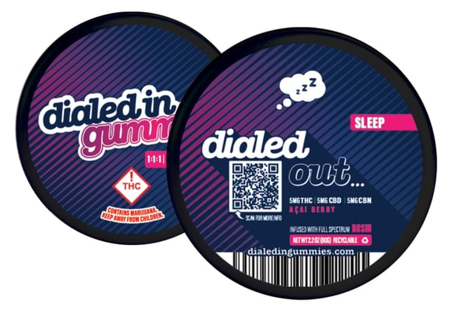 Dialed In... Gummies is pleased to introduce you to Dialed Out... your rosin infused sleep gummy. Each gummy is made with 5mg's of full spectrum indica THC rosin, and completed with 5mg's of pure CBD & CBN to pull you and your customer's straight into that dreamy night's sleep. Harnessing the combined power of THC, CBD, and CBN, along with a fast-acting component, this acai berry gummy ensures a timely drift into sleep, while feeling revitalized in the morning.