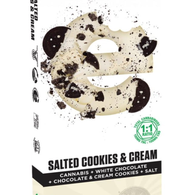 Ingredients: White confectionery coating, chocolate sandwich cookies, palm kernel oil, cannabis extract, salt